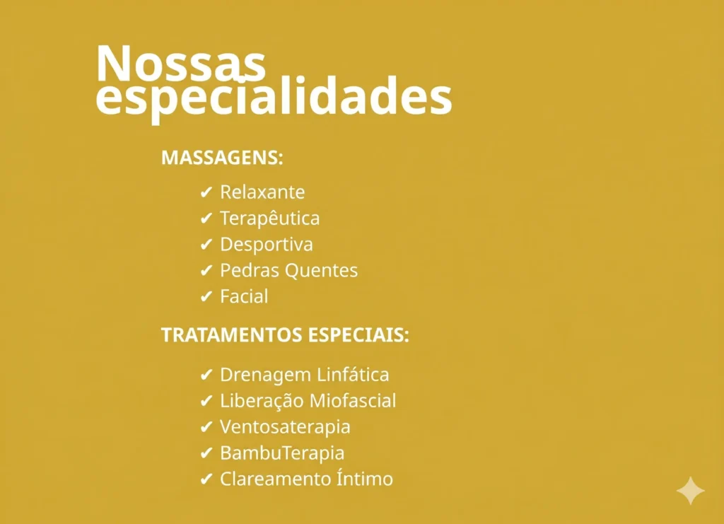 De massagens terapêuticas a tratamentos faciais masculinos, cada sessão é uma jornada de bem-estar projetada para atender às necessidades específicas do corpo masculino, proporcionando resultados visíveis e duradouros.
